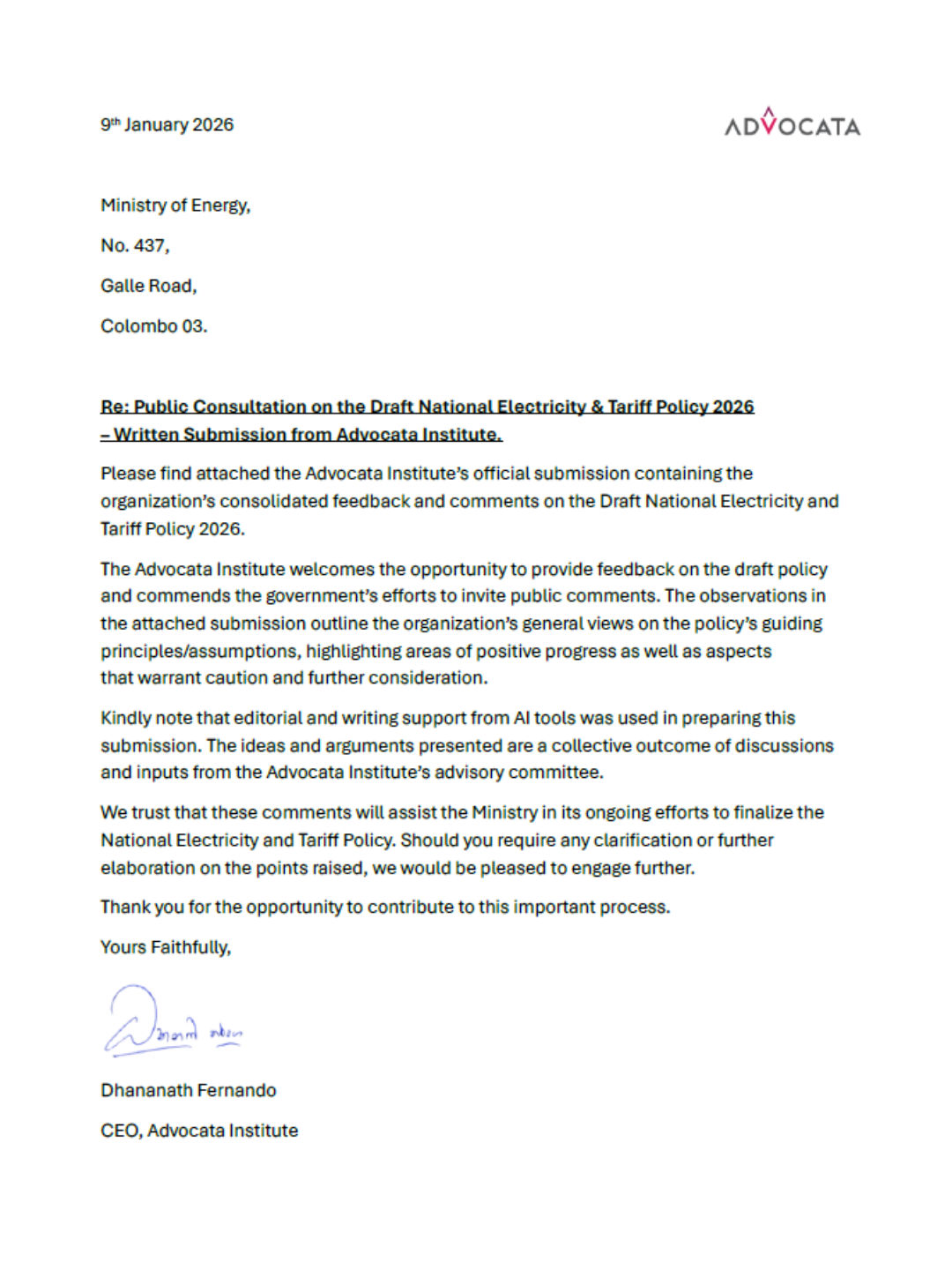 Deane Jayamanne March 12, 2026 Public Consultation on the Final Draft National Electricity & Tariff Policy 2026 Deane Jayamanne March 12, 2026 Full Report